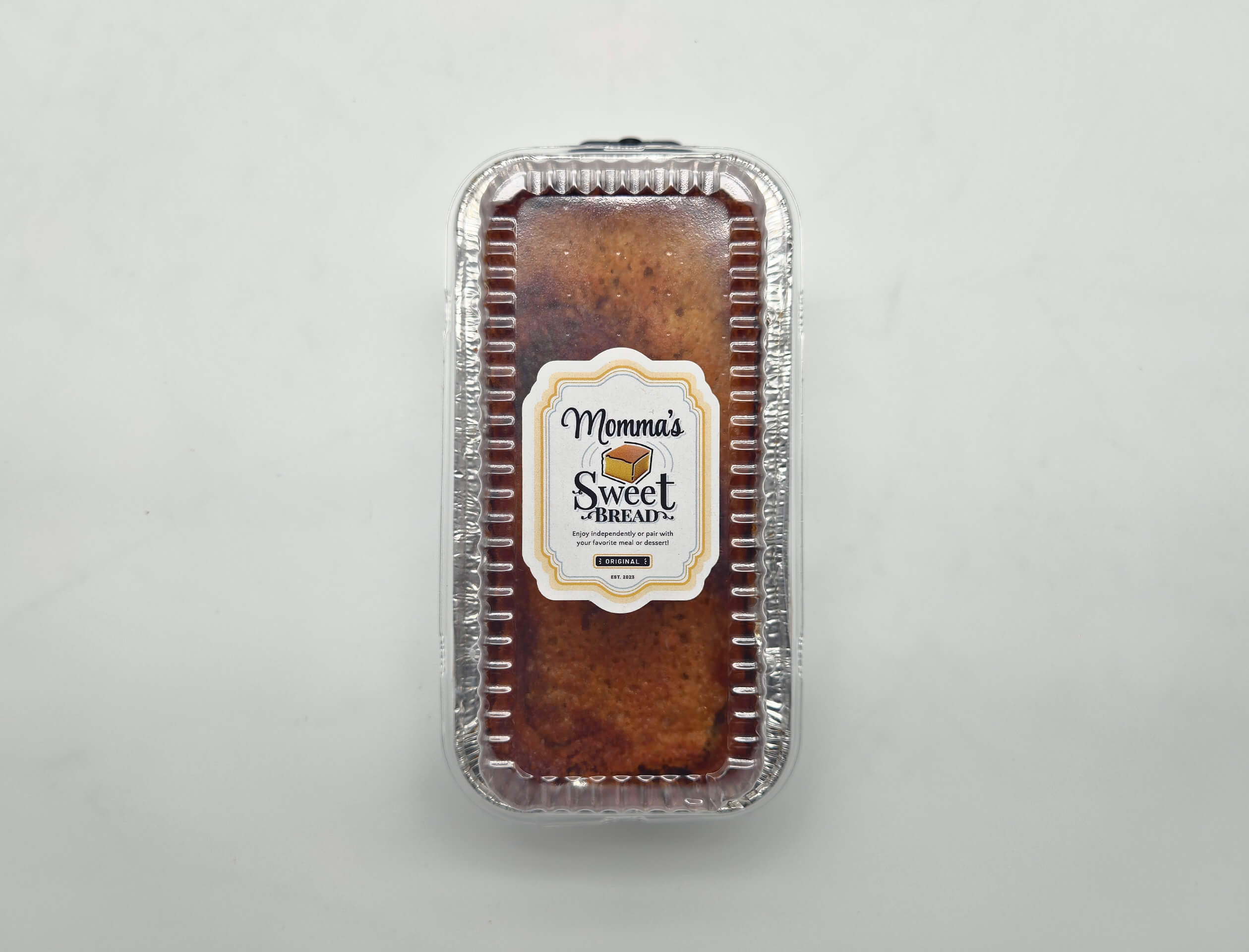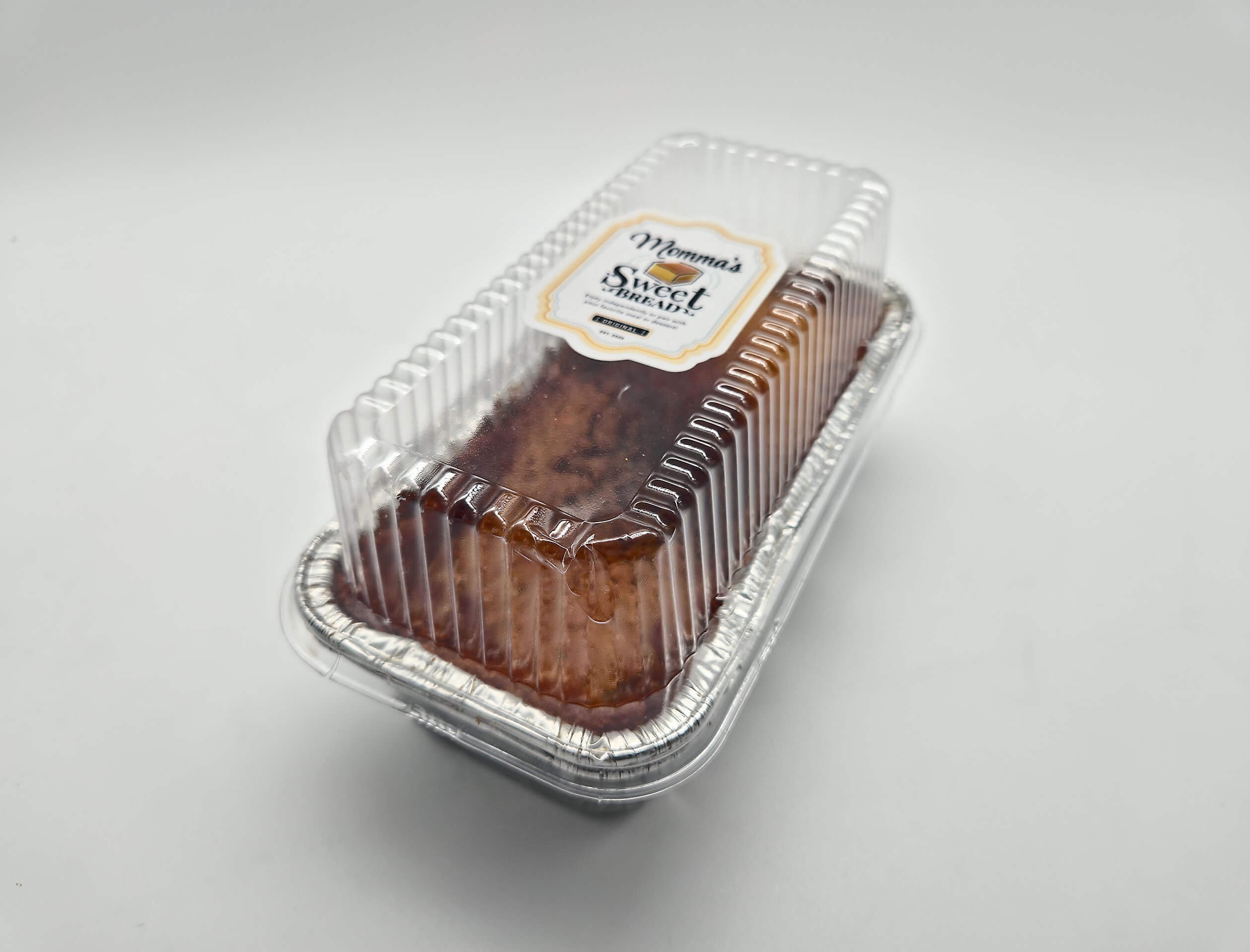 Our personal batch consist of a 8 x 3.75 x 2.5 inch (with a clear lid) disposable aluminum pan with deliciously handcrafted Momma’s Sweet Bread ℠.